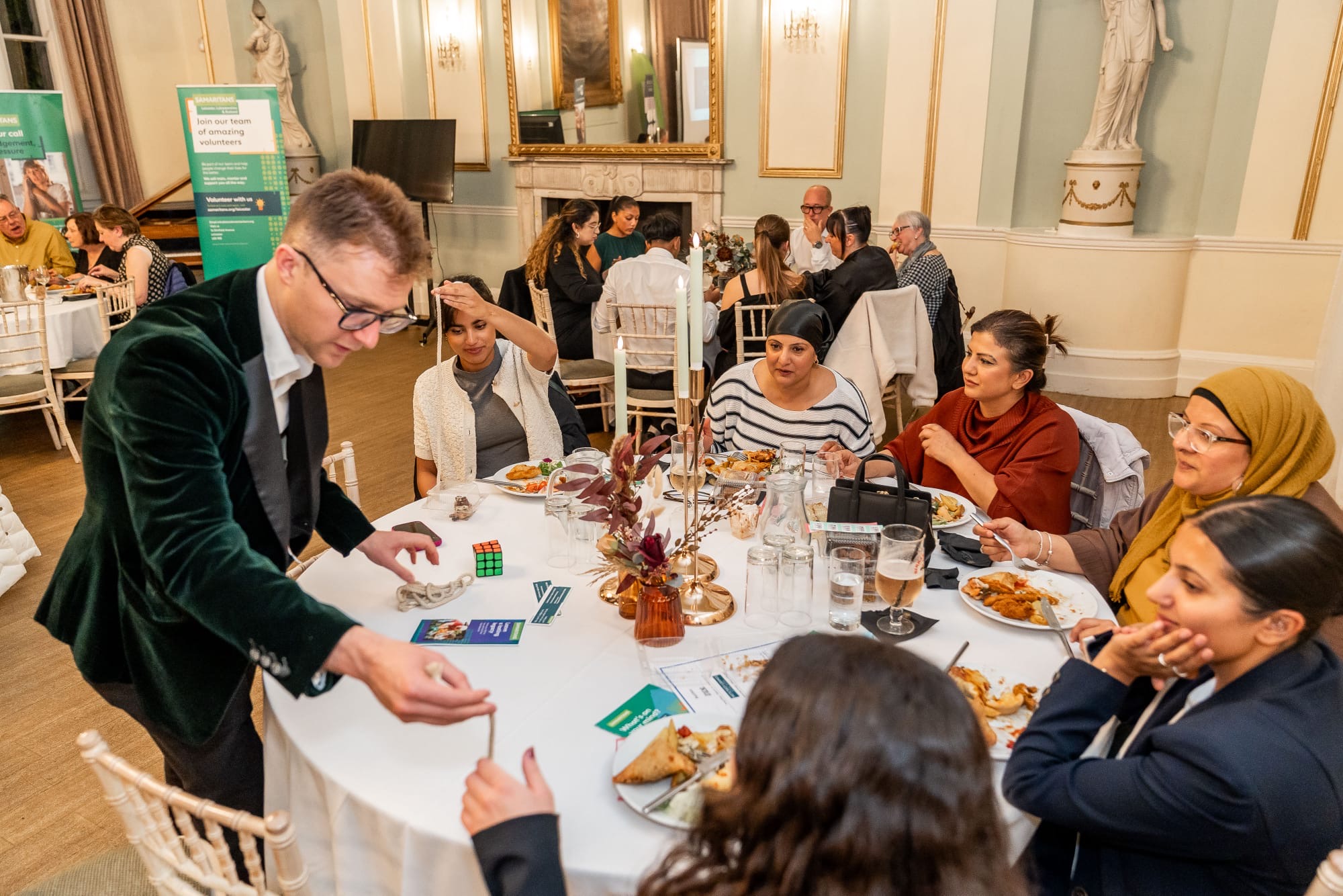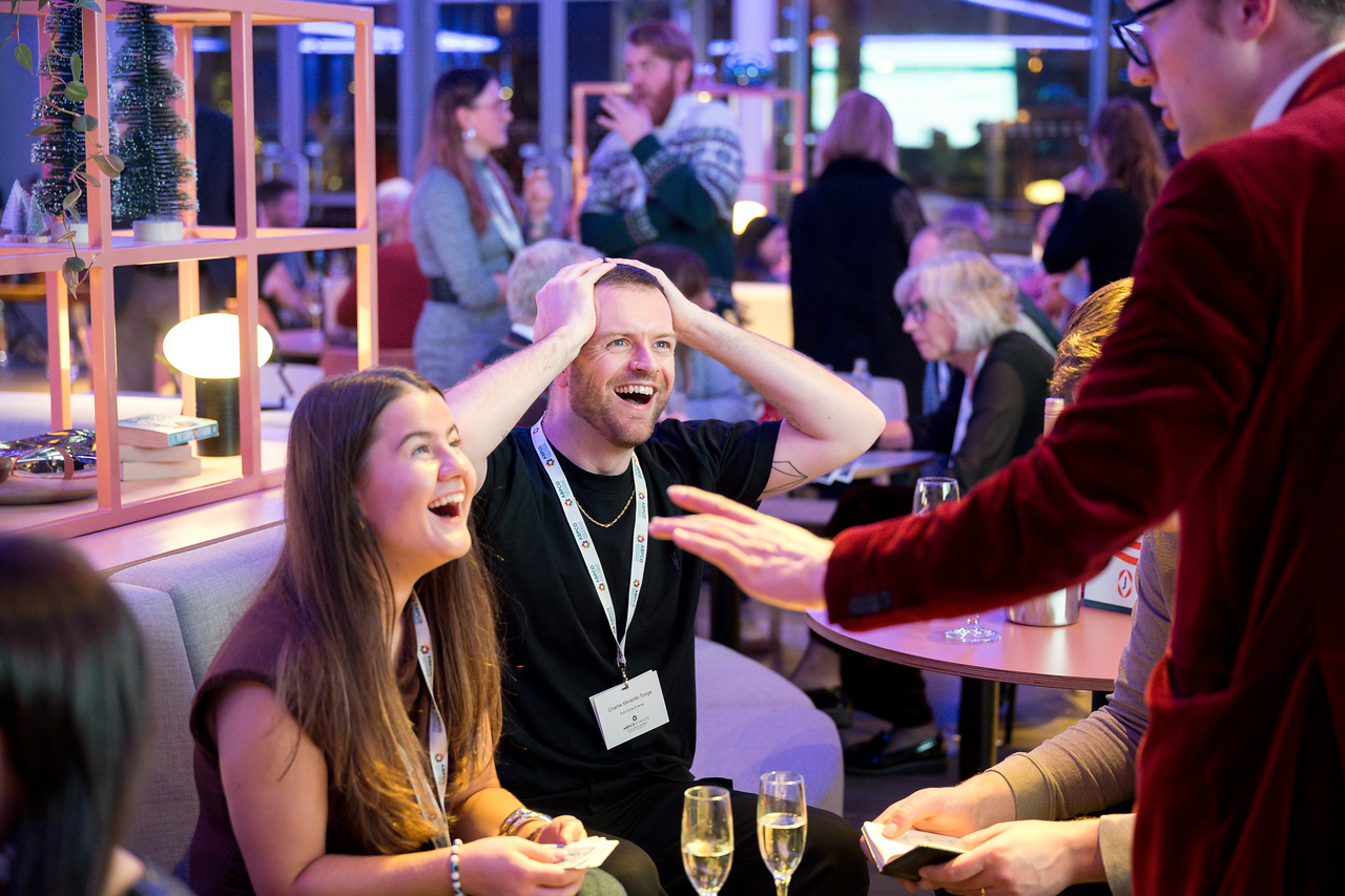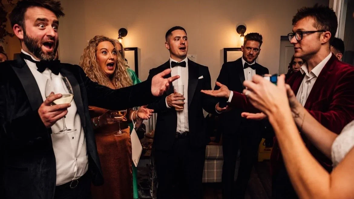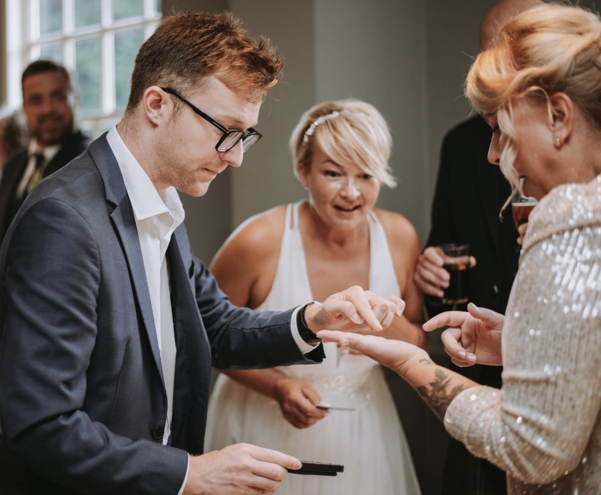 A wedding specialist, Angus brings a truly magical touch to every stage of the day - from drinks receptions and wedding breakfasts to evening celebrations. His close-up magic and mentalism create natural moments of connection, breaking the ice between guests and leaving tables astonished. He also designs bespoke routines for couples, ensuring a personal and memorable highlight that makes the day even more special. Equally at home in elegant country houses, converted barns or grand city venues, Angus adapts seamlessly to any setting.
