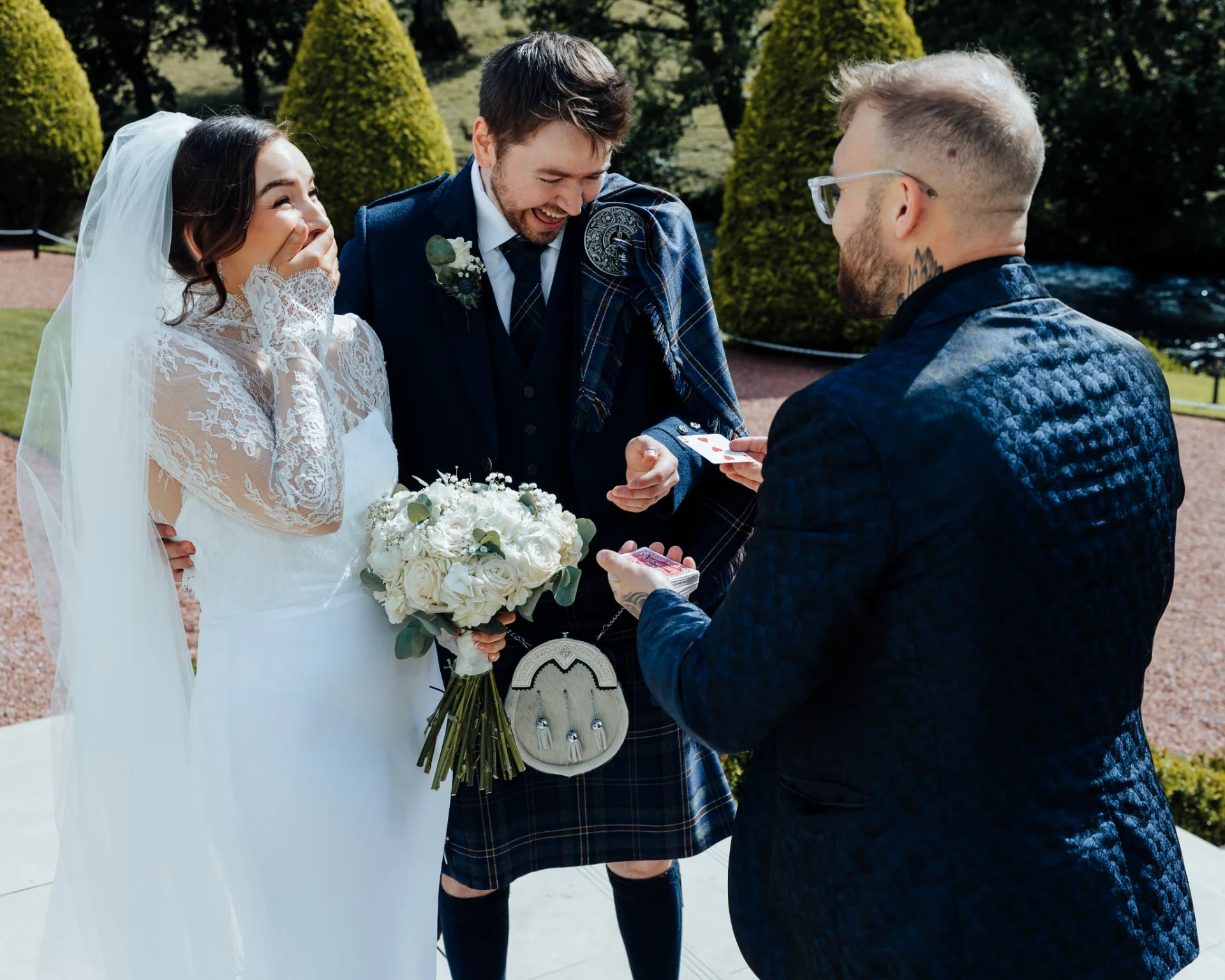 Cameron Young has performed at over 2,000 weddings across the UK and is the reigning Scottish Wedding Entertainer of the Year 2026. A member of The Magic Circle, he has appeared on Britain’s Got Talent and Penn & Teller: Fool Us, earning praise from David Walliams and Jamie Raven. Alongside weddings, he is trusted by brands including Amazon, Barclays, Diageo, Arnold Clark and The Old Course St Andrews.
