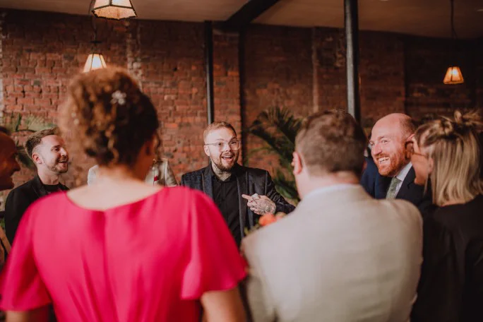 His style is modern, high-impact and precisely judged. Cameron specialises in close-up magic during drinks receptions and wedding breakfasts, creating sharp, visual moments that generate genuine reactions without overpowering the room. He also hosts - managing guest movement, introducing the couple, coordinating speeches and controlling the energy of the day. Having attended thousands of weddings, he understands timing and flow at a level few entertainers do.