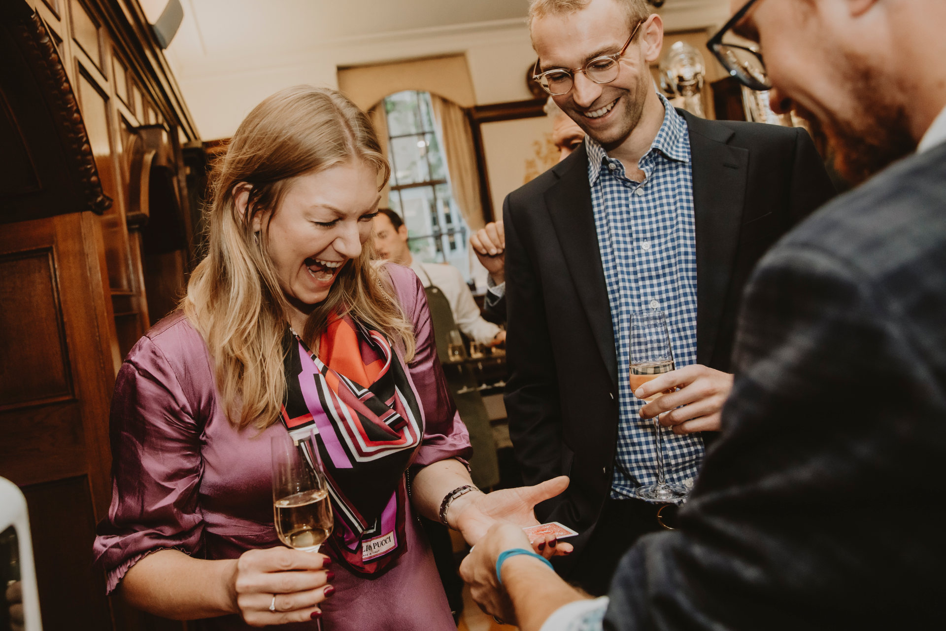 Unlike most magicians, David does more than perform. He combines high-impact close-up and table magic with confident event hosting, guiding guests throughout the day, making key introductions and warming the room before speeches with a short stage set. His background in theatre gives him strong presence, timing and control of a room, allowing him to switch effortlessly between entertaining children and delivering sharp, intelligent magic for adults.