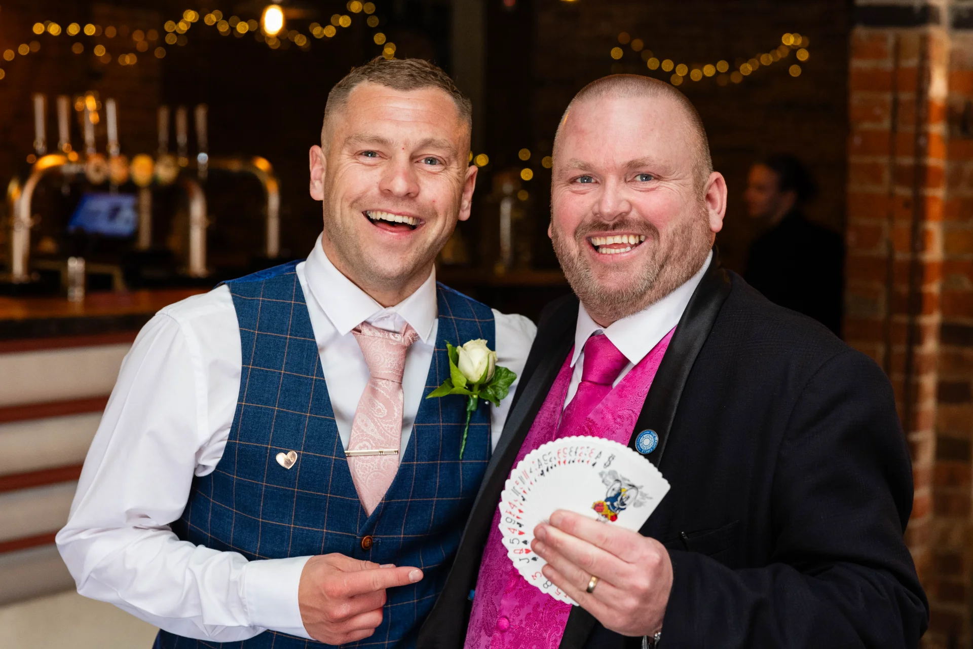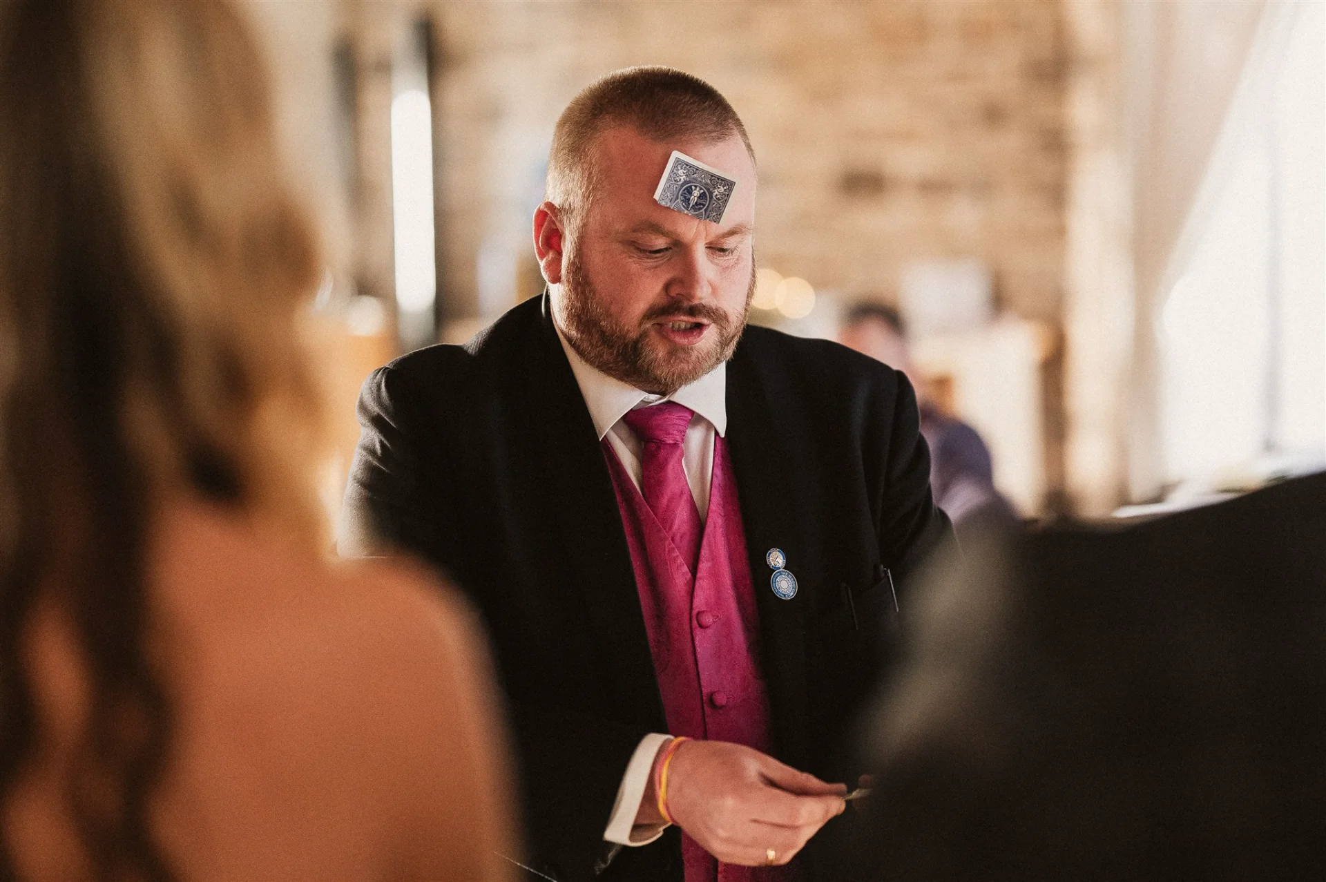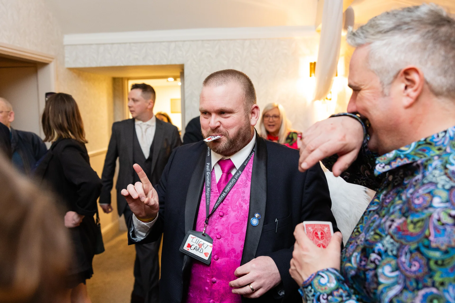 What sets Paul apart is his seamless blend of technical mastery and engaging personality. His magic doesn’t just wow — it connects. Whether at a drinks reception or moving through tables during the wedding breakfast, Paul breaks the ice, sparks genuine laughter and creates shared moments guests talk about long after the day is over. His skill with cards, coins, rope and mentalism is matched by an entertainer’s instincts for timing, crowd reading and atmosphere.