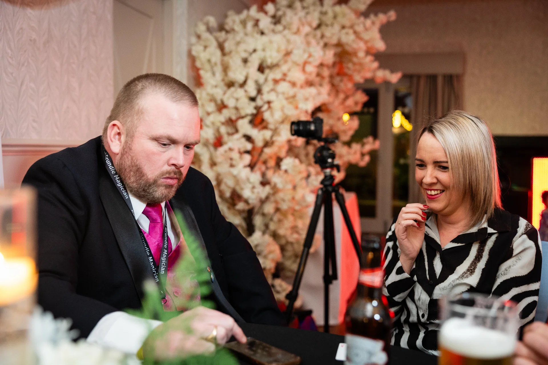 Paul Grundle is a multi-award winning professional wedding magician with over 20 years’ experience performing close-up, table and mix-and-mingle magic across the UK. A member of the prestigious Magic Circle, Paul has built a reputation for world-class sleight of hand, mind reading and bespoke routines that consistently astonish and delight audiences of all ages. His work has taken him from Derby and Nottingham to major corporate stages and unforgettable wedding celebrations.