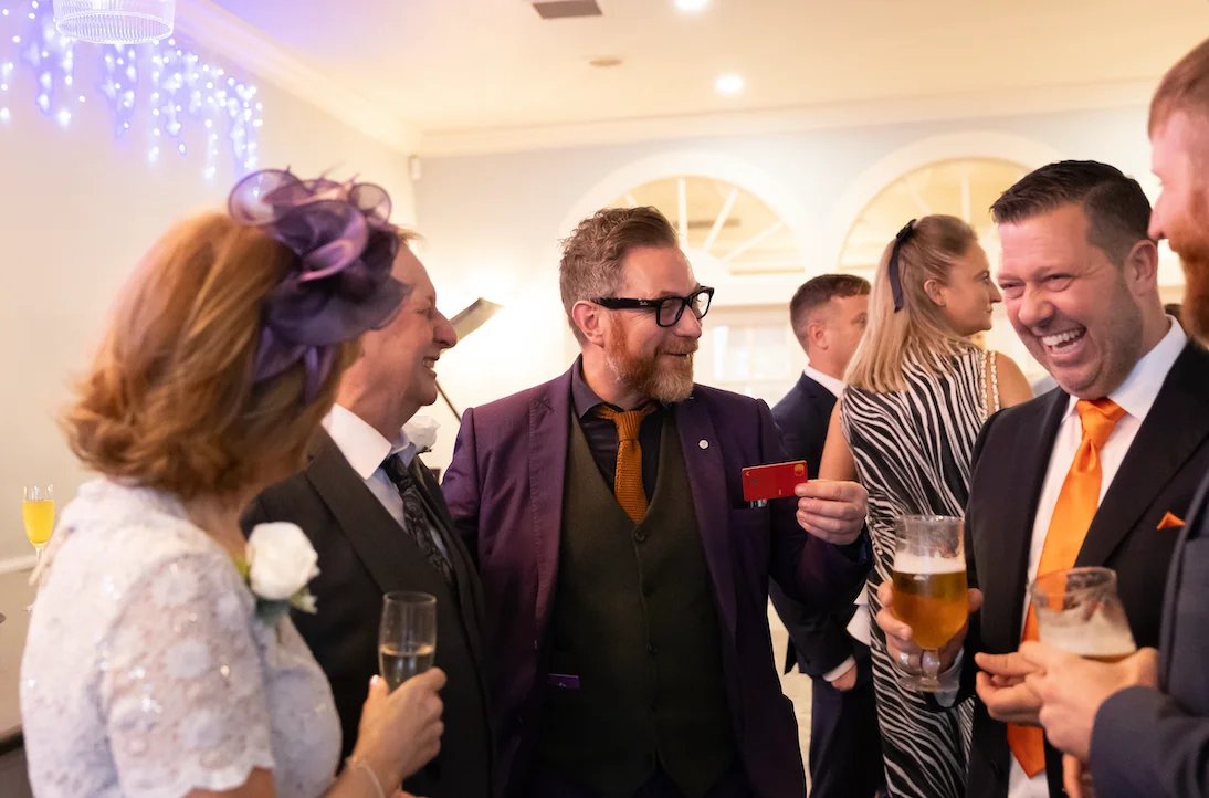 For weddings, Steve keeps guests fully entertained during drinks receptions, room turnarounds and between courses - exactly when energy can dip. He breaks the ice between families, creates genuine shared reactions, and leaves couples with bespoke keepsake moments such as his unforgettable King and Queen card routine. The result is a wedding that feels connected, seamless and talked about long after the last dance.