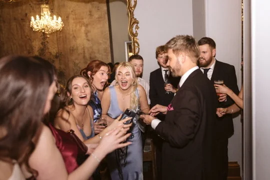 For couples who want more than background entertainment, Tim creates genuine moments of amazement. He breaks the ice during drinks, keeps guests captivated between courses, ensures no one misses out - even when you’re away for photos - and leaves the entire room talking long after the wedding breakfast ends. The result is a celebration that feels smooth, elevated and unforgettable.